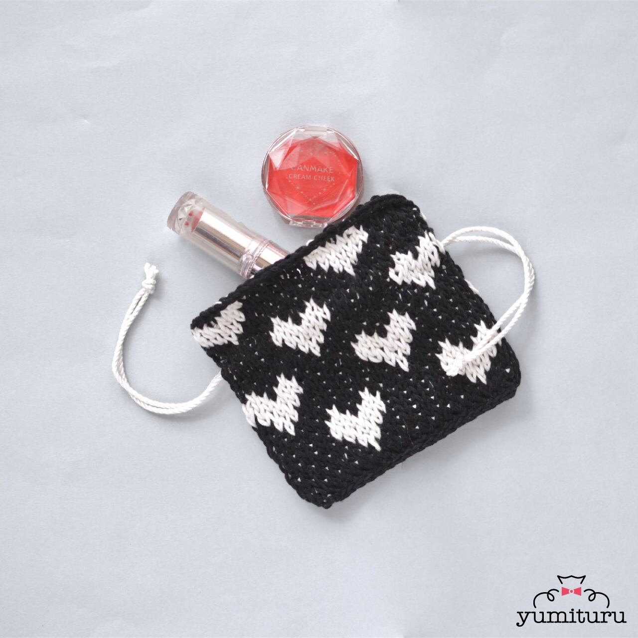 yumituruのニット巾着は、カラフルでポップな1点もの♪