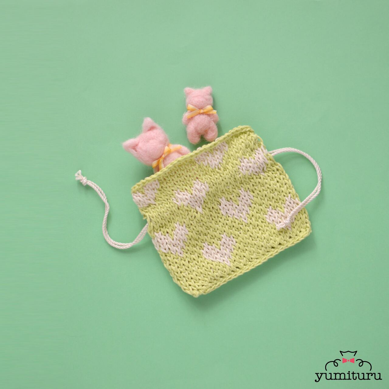 yumituruのニット巾着は、カラフルでポップな1点もの♪