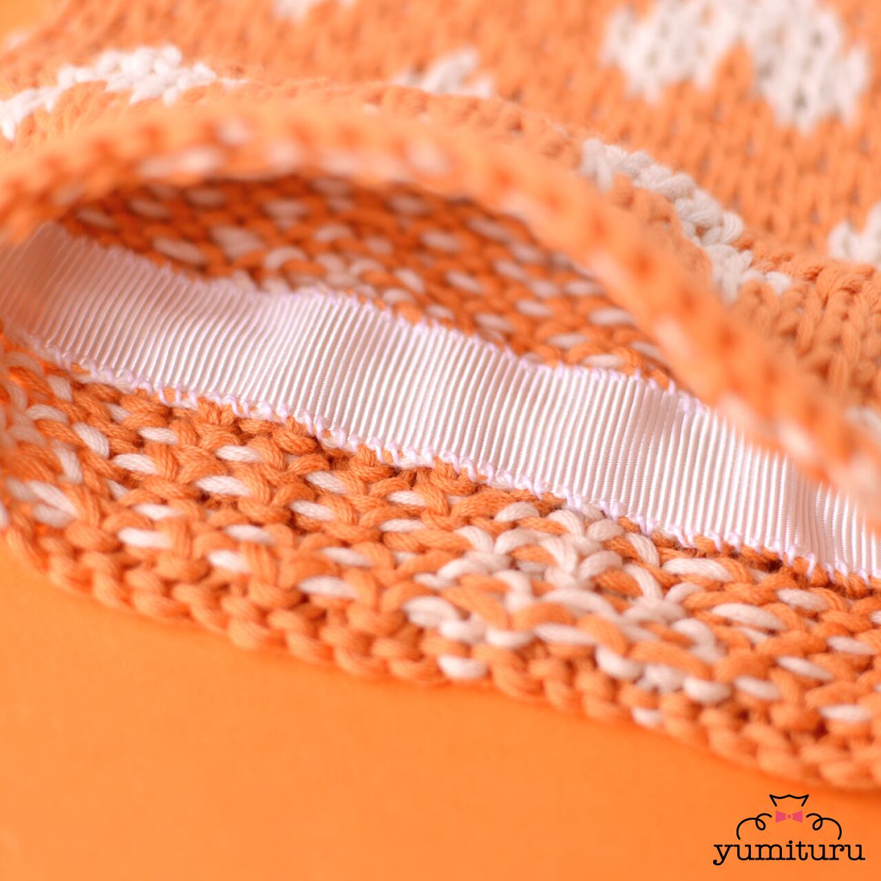 パキッとしたオレンジと白の2色の糸を編み込んでいるので
