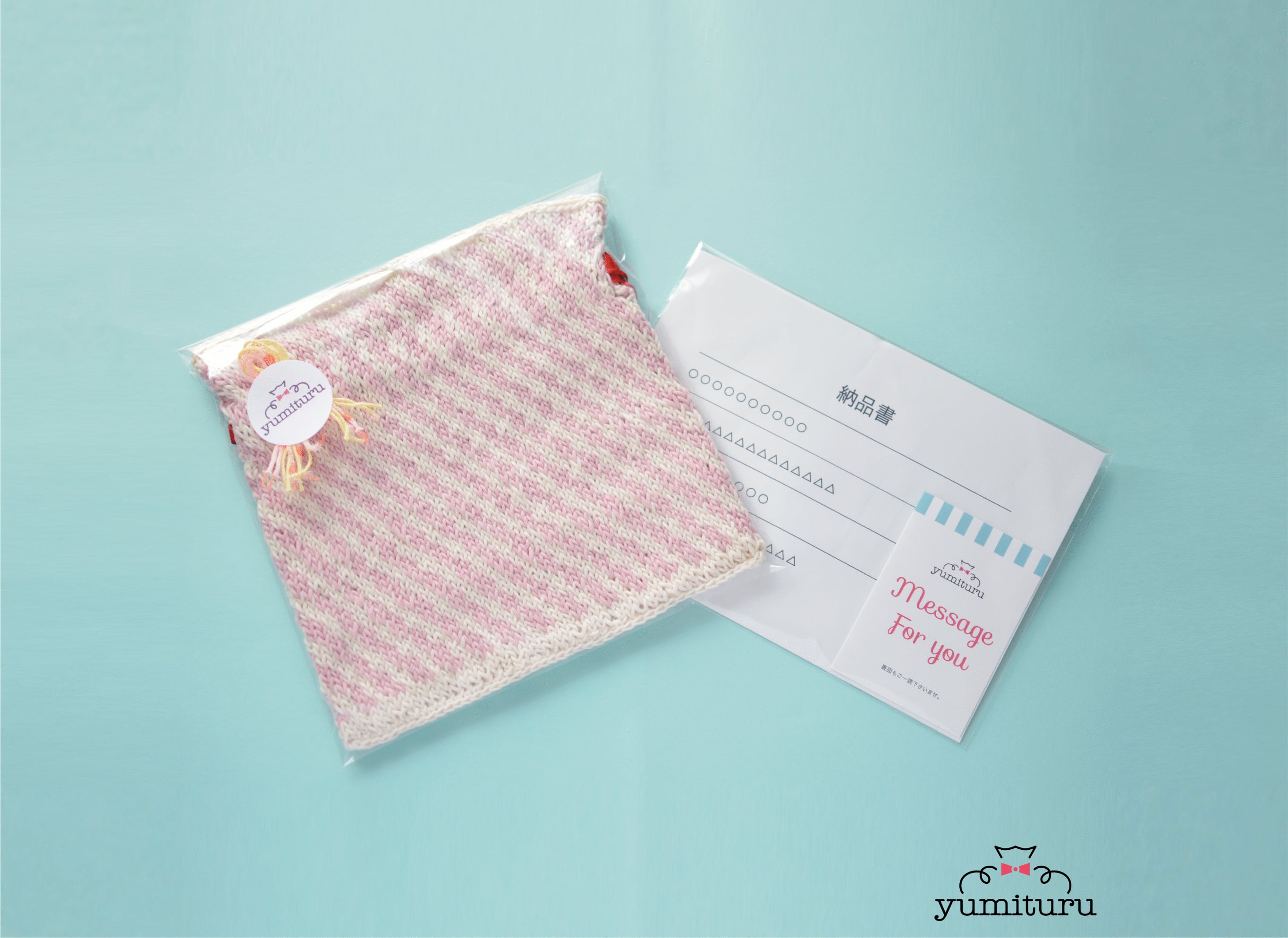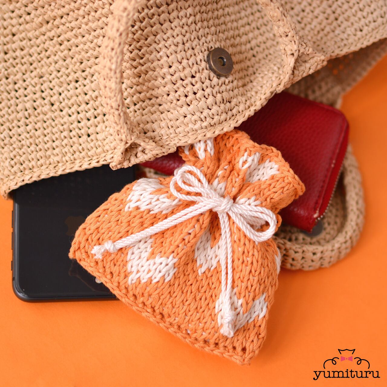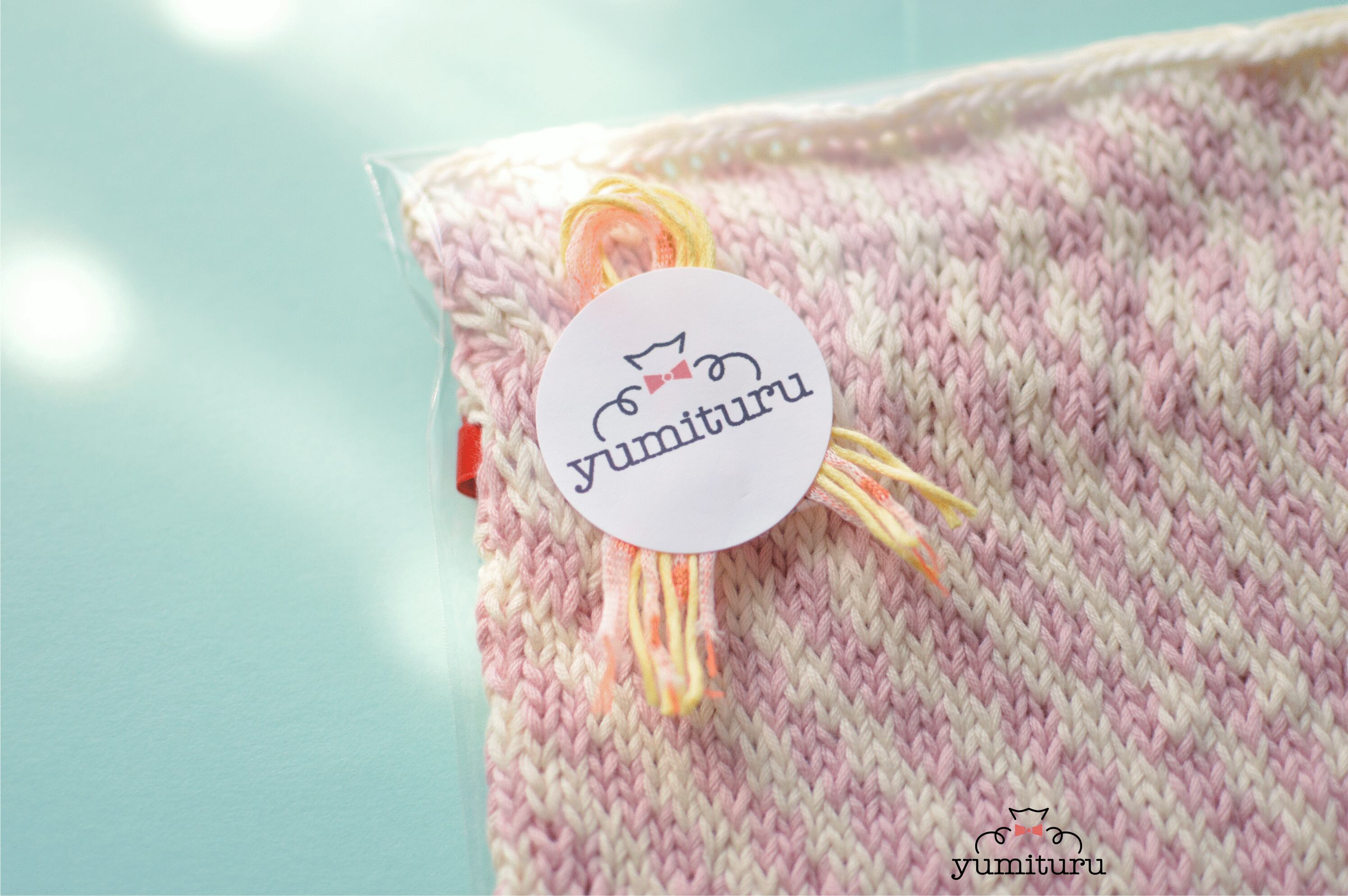 yumituruのニット巾着は、カラフルでポップな1点もの♪