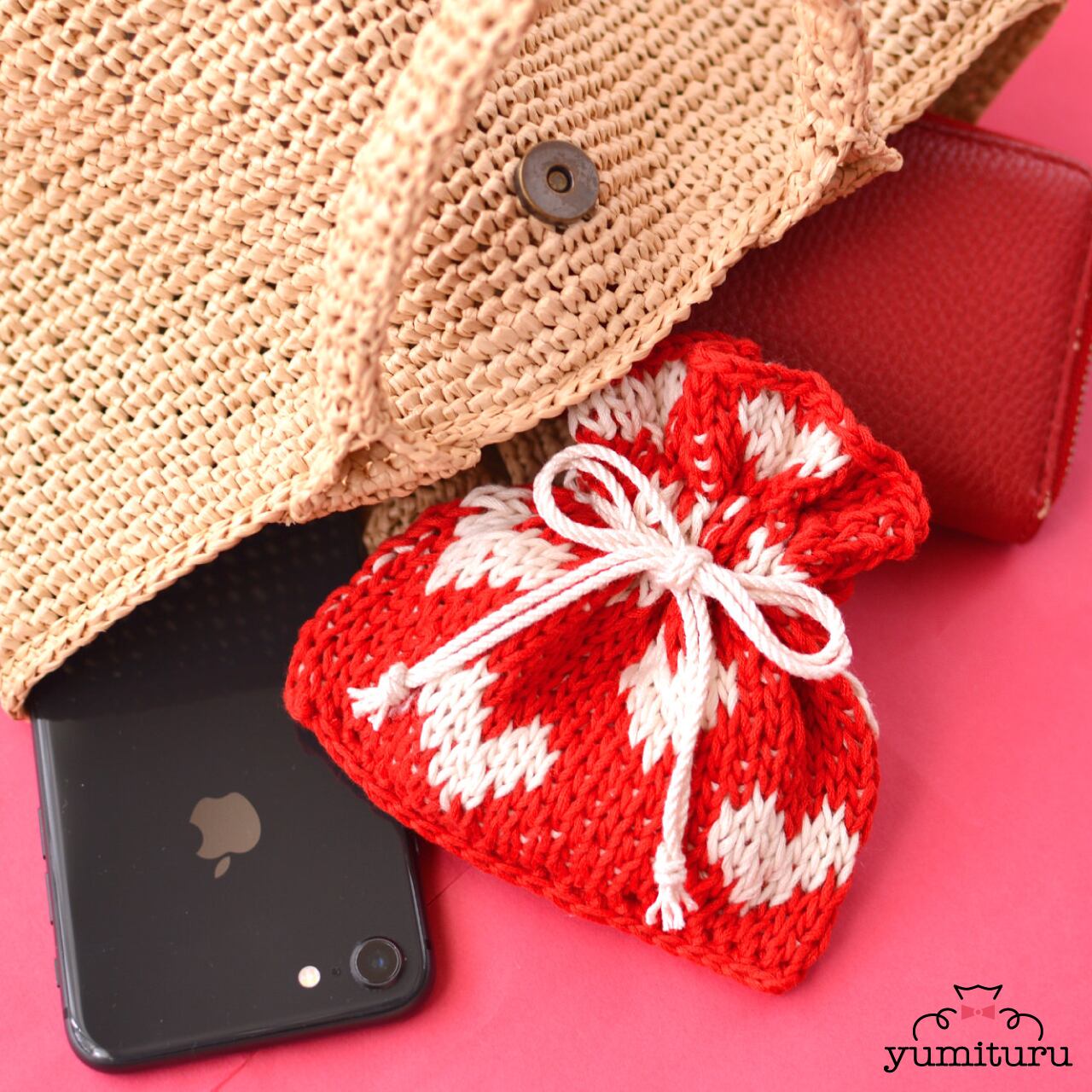 yumituruのニット巾着は、カラフルでポップな1点もの♪